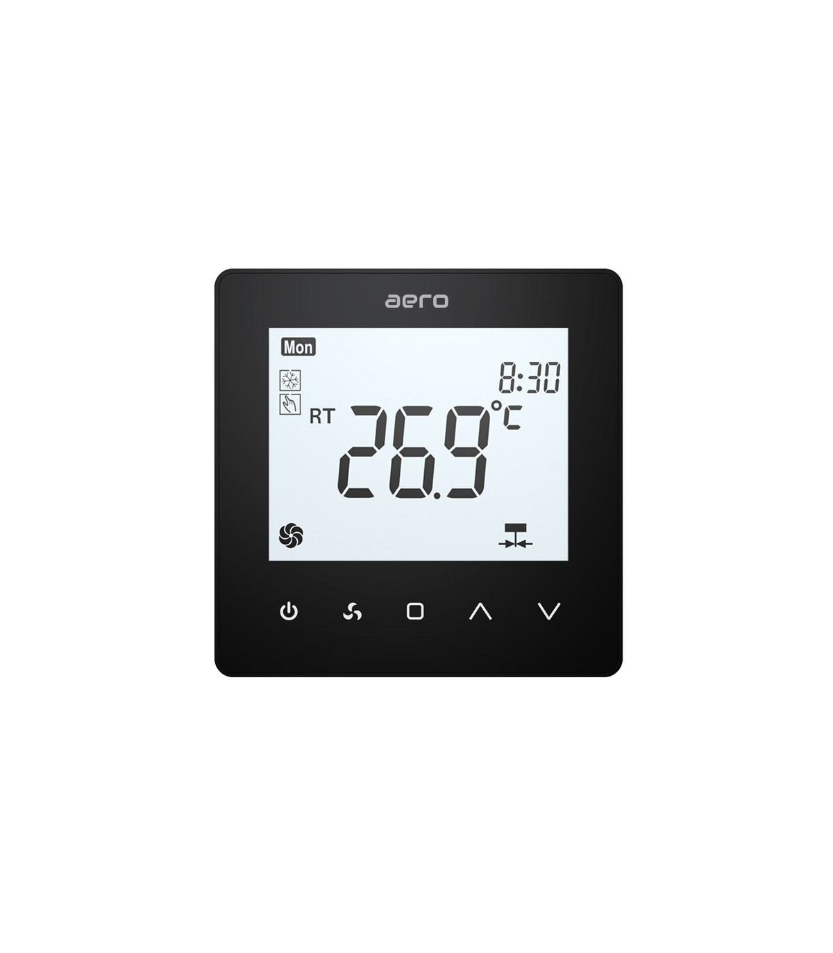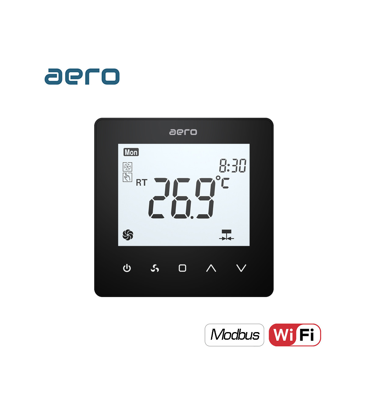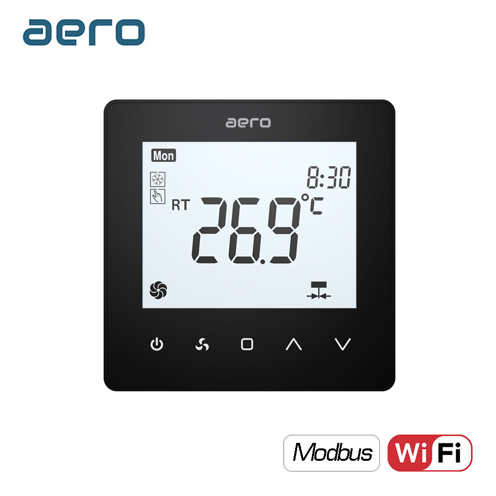 Termostat AERO TP518FC4WN Black, pentru Ventiloconvector, 2/4 tevi, WiFi, Modbus, Tuya, Smart Life, Alexa, Google, Negru