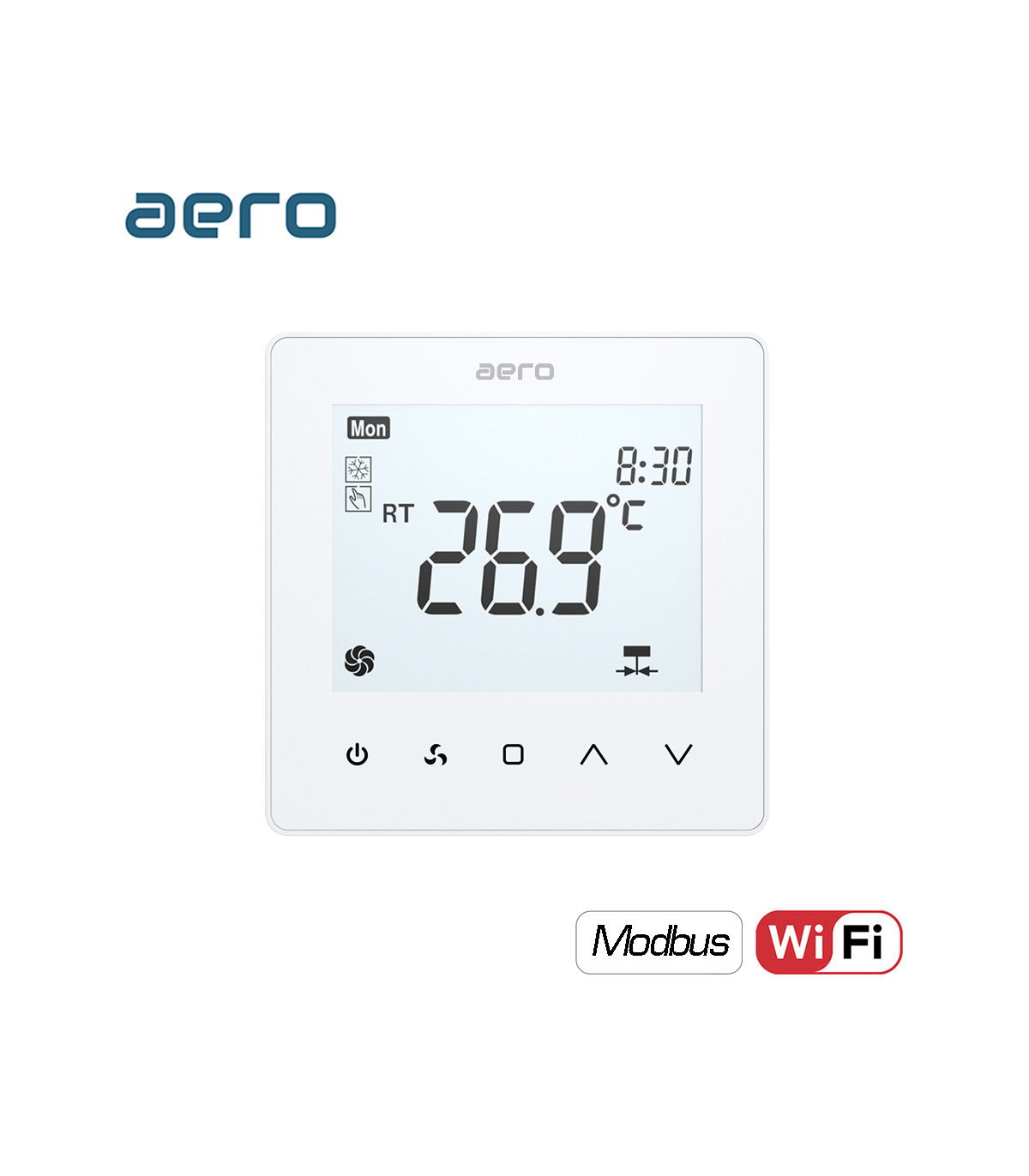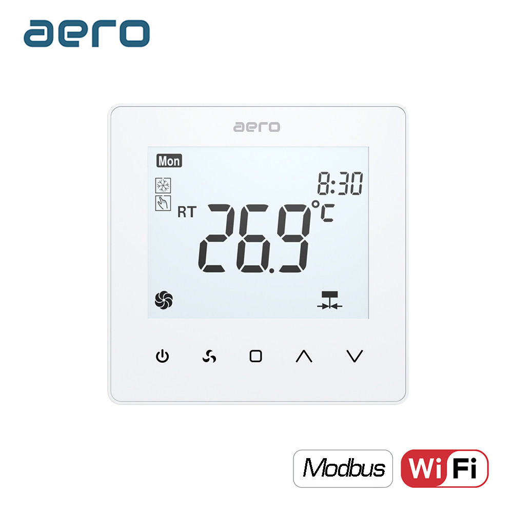 Termostat AERO TP518FC4WN White, pentru Ventiloconvector, 2/4 tevi, WiFi, Modbus, Tuya, Smart Life, Alexa, Google, Alb